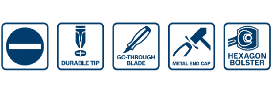 ไขควงรุ่น SL4.5 Professional จากบ๊อชมีความทนทานเป็นพิเศษด้วยก้านโลหะที่ยาวต่อเนื่องทะลุด้ามจับ ฝาครอบปลายด้ามเป็นโลหะ และส่วนปลายชุบแข็ง ดีไซน์ด้ามจับสอดรับสรีระและที่จับแบบนุ่มช่วยให้ใช้งานสะดวกสบาย มาพร้อมตัวยึดทรงหกเหลี่ยมบริเวณที่ต่อกับด้ามแบบในตัวช่วยให้สามารถใช้แรงขันได้เพิ่มขึ้น เหมาะสำหรับการขันสกรู การสกัด และการคลายสกรูยึด