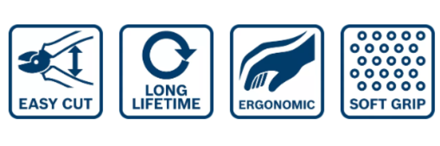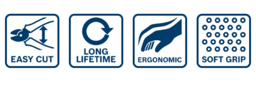 - ดีไซน์เอื้อต่อการใช้งานสูงสุดและควบคุมง่าย โดยใช้แรงในการตัดวัสดุน้อยกว่าคีมมาตรฐานทั่วไปถึง 30%