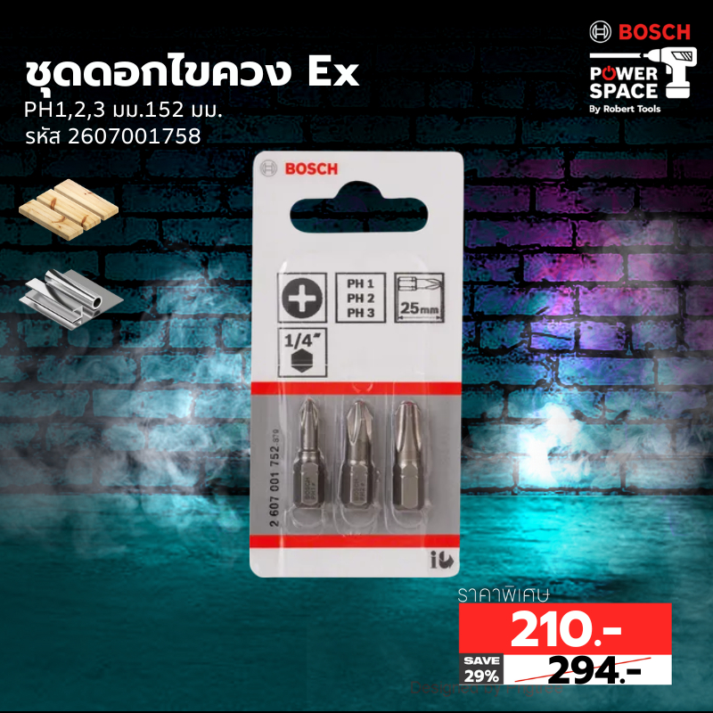 Bosch - 2607001758 ดอกไขควง Ex PH1,2,3 มม.152 มม.