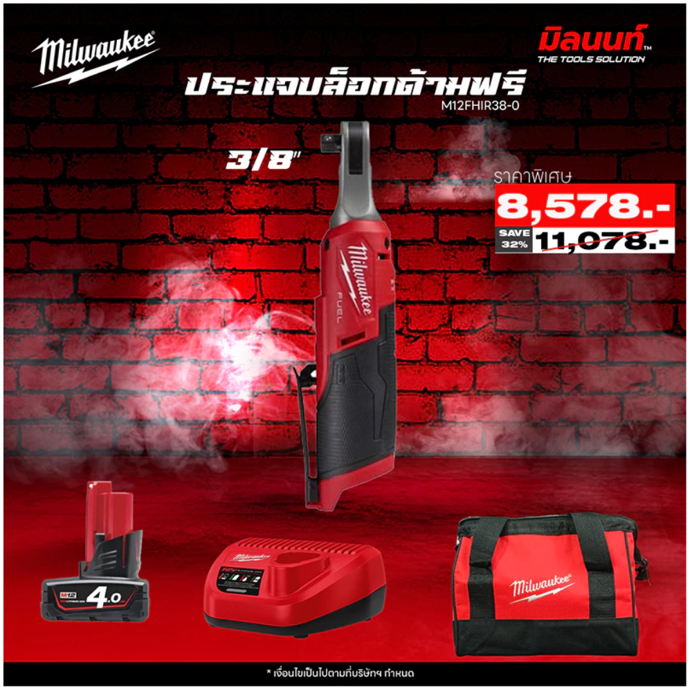 คุณสมบัติ - 1. Milwaukee - M12FHIR38-0 ประแจบล็อกด้ามฟรีไร้สาย 12 โวลต์ 3/8" พร้อมแบตและแท่นชาร์จ