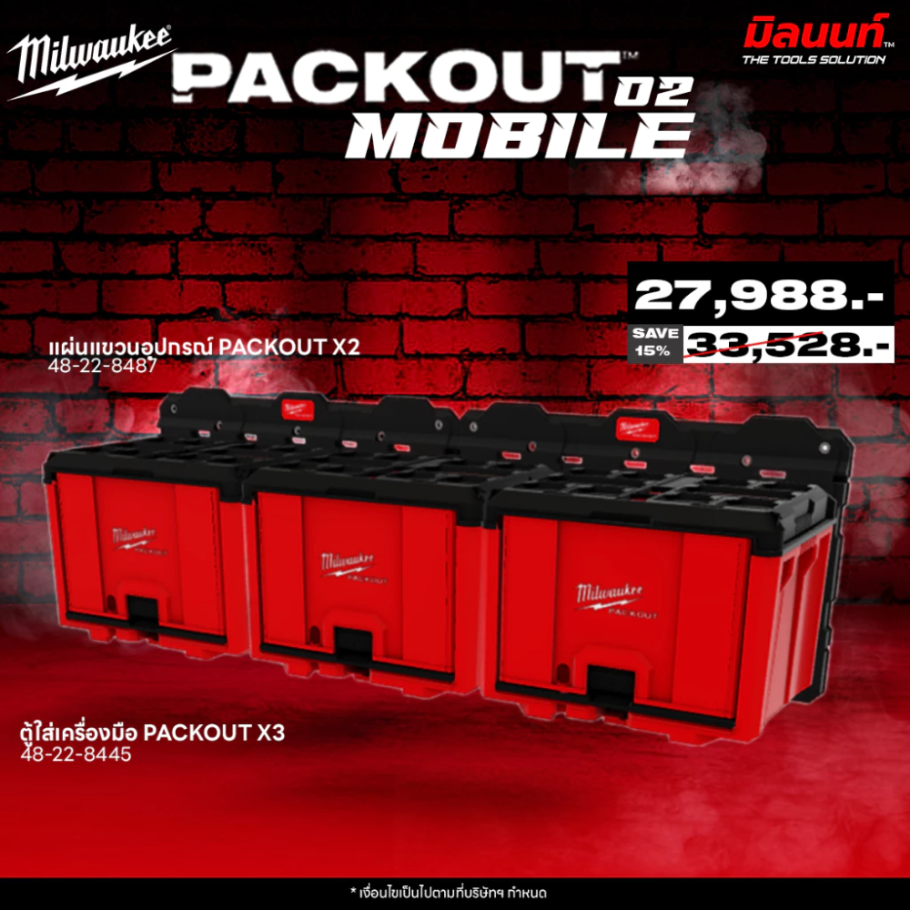 คุณสมบัติ - 2. Milwaukee รุ่น ตู้ใส่เครื่องมือ PACKOUT 48-22-8445 X3