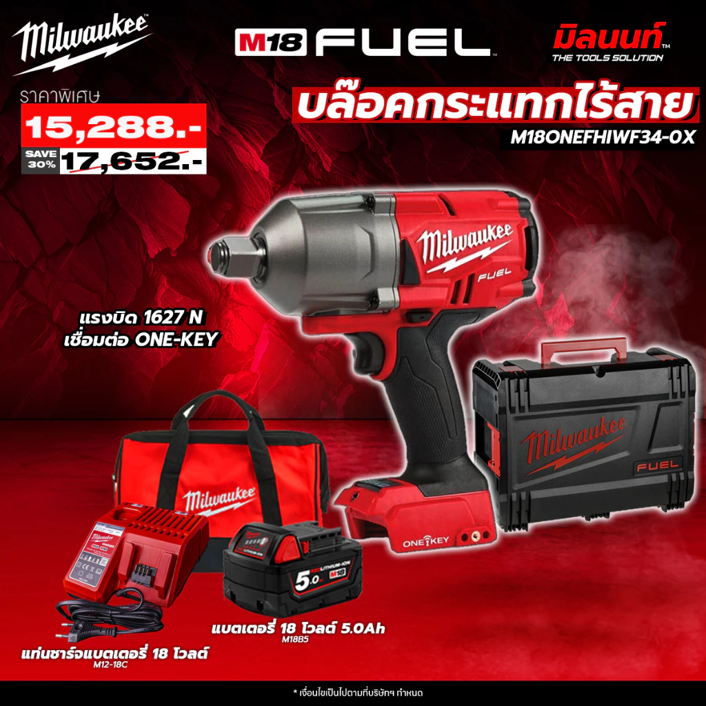 คุณสมบัติ - 1. Milwaukee บล๊อคกระแทกไร้สาย18โวลท์ รุ่น M18 ONEFHIWF34-OX แรงบิด 1627 N เชื่อมต่อ ONE-KEY (เครื่องเปล่า)