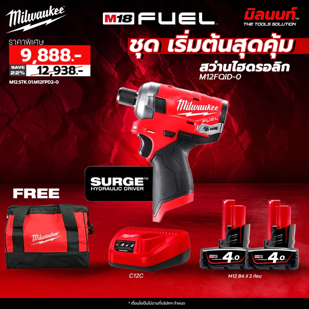 คุณสมบัติ - 1. Milwaukee สว่านไฮดรอลิก M12 FQID-0 SURGE HYDRAULIC DRIVER