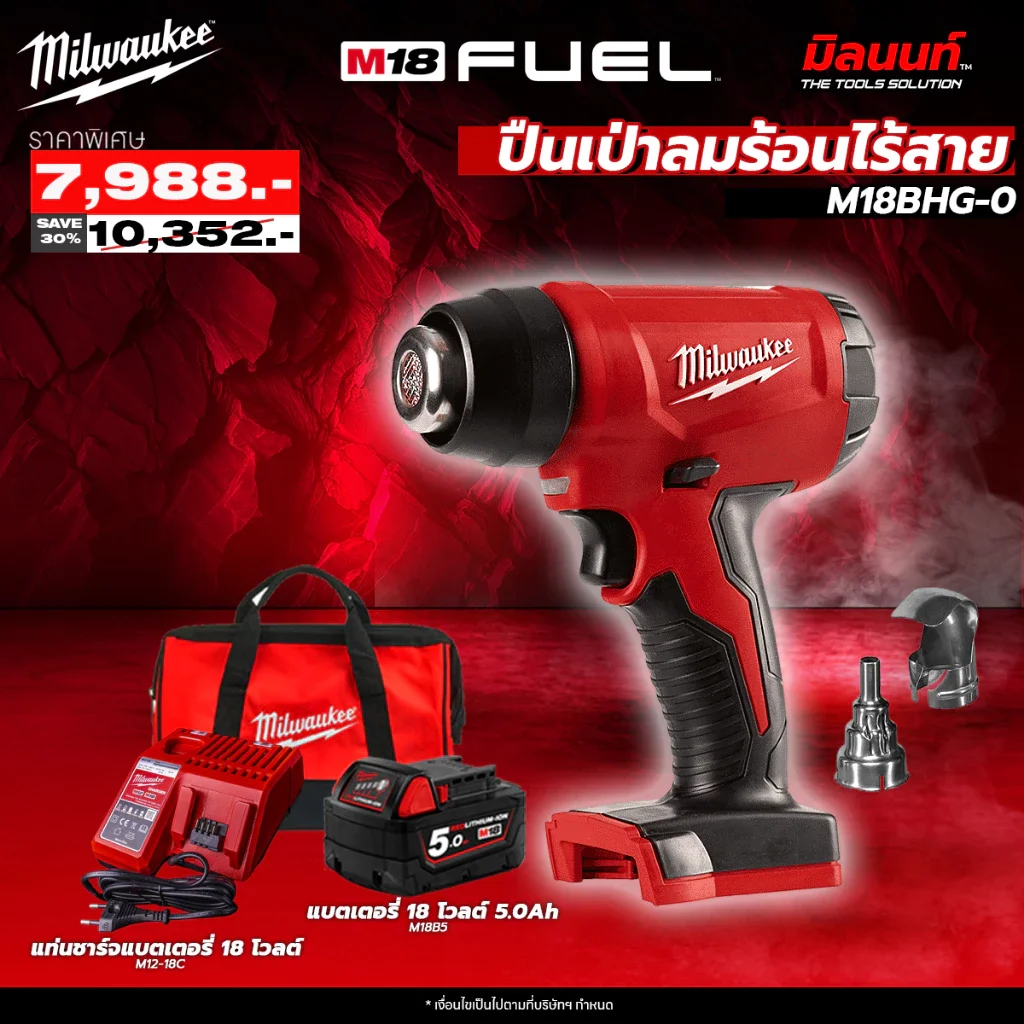คุณสมบัติ - 1. Milwaukee ปืนเป่าลมร้อน ไร้สาย 18 โวลต์ (เครื่องเปล่า) M18 BHG-0