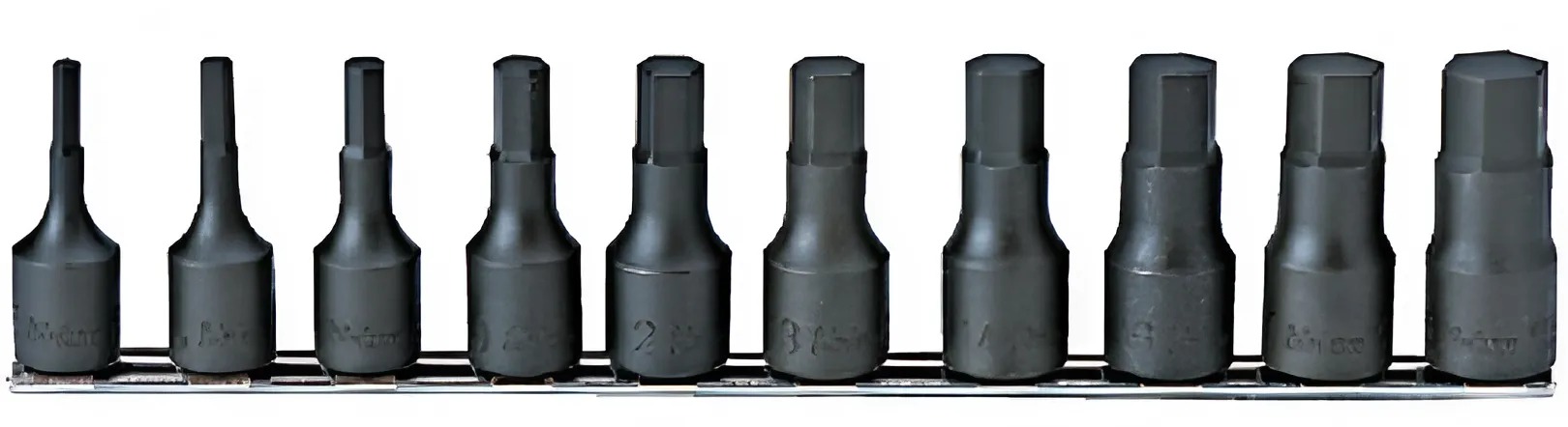 - ชุดบ๊อกเดือยโผล่ หกเหลี่ยม (มิล) 1/2" ชุด 10 ชิ้น ในรางเหล็ก x1
