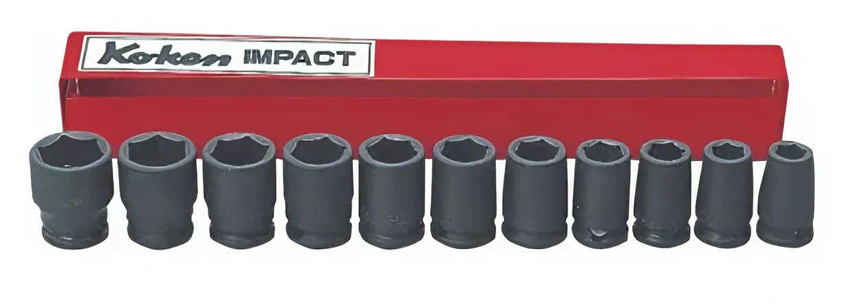 KOKEN ลูกบ๊อกลม 3/8" 6P-11 ชิ้น (9-19mm.) ในกล่องเหล็ก รหัส 13241M