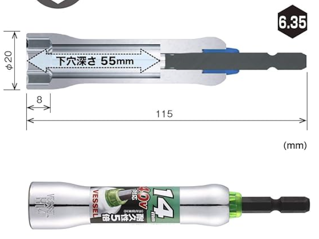 Vessel รุ่น MTA201411 ลูกบ๊อกแกนหกเหลี่ยม 14 x 115 D(20) , I(8)