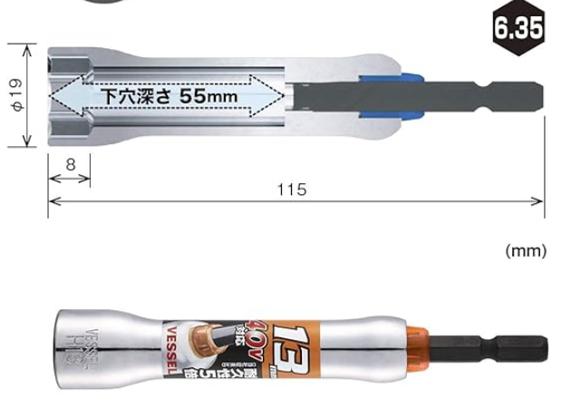 Vessel รุ่น MTA201311 ลูกบ๊อกแกนหกเหลี่ยม 13 x 115 D(19) , I(8)