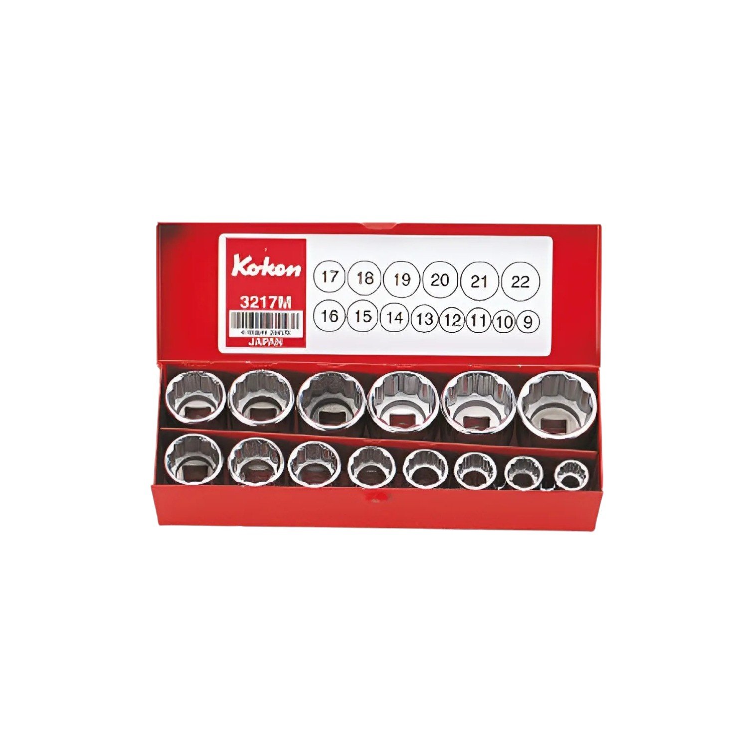 KOKEN บ๊อกซ์ชุด 12P 14 ชิ้น (มิล) ในกล่องเหล็ก (Socket Set) รหัส 3217M