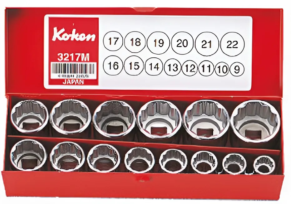KOKEN บ๊อกซ์ชุด 12P 14 ชิ้น (มิล) ในกล่องเหล็ก (Socket Set) รหัส 3217M