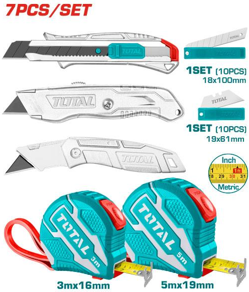 Total รุ่น TOS23036E COMBO SET ชุดที่ 98 มีดคัตเตอร์+ตลับเมตร+ใบมีด รวม 7 ชิ้น/ชุด