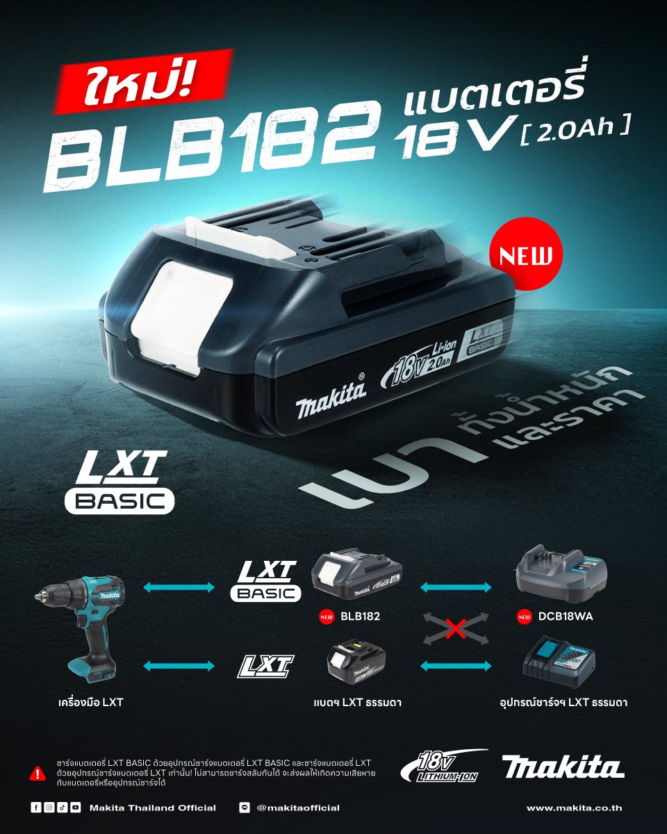 • เทคโนโลยี LXT BASIC รุ่นใหม่จากมากีต้าออกแบบมาเพื่อตอบโจทย์ผู้ใช้งานที่ต้องการความคุ้มค่า น้ำหนักเบา และสามารถใช้งานร่วมกับเครื่องมือ Makita 18V ได้หลากหลาย