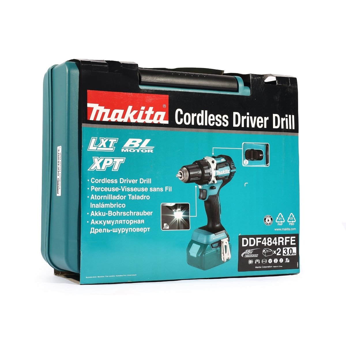 MAKITA รุ่น DDF484RFE ชุดเซ็ท สว่านไร้สาย 18V 3Ah x2, DC18RC N-M 54/30 BL motor