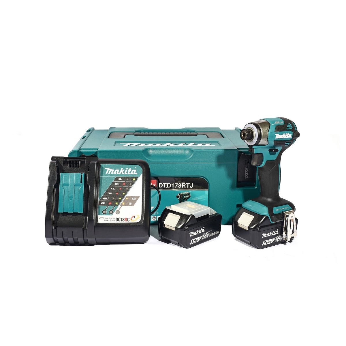 MAKITA รุ่น DTD173RTJ ชุดเซ็ทไขควงกระแทกไร้สาย 18V 5Ah x2, DC18RC, Makpac (Type 2) N-M 180