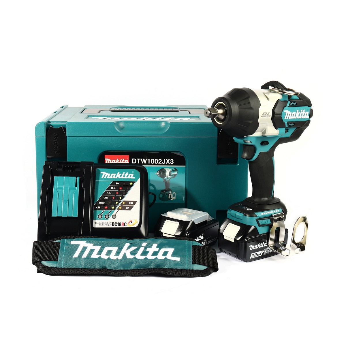 MAKITA รุ่น DTW1002JX3 ชุดเซ็ท เครื่องขันบล็อกไร้สาย 18V 18V 3Ah x2, DC18RC Nm.1200 BL motor