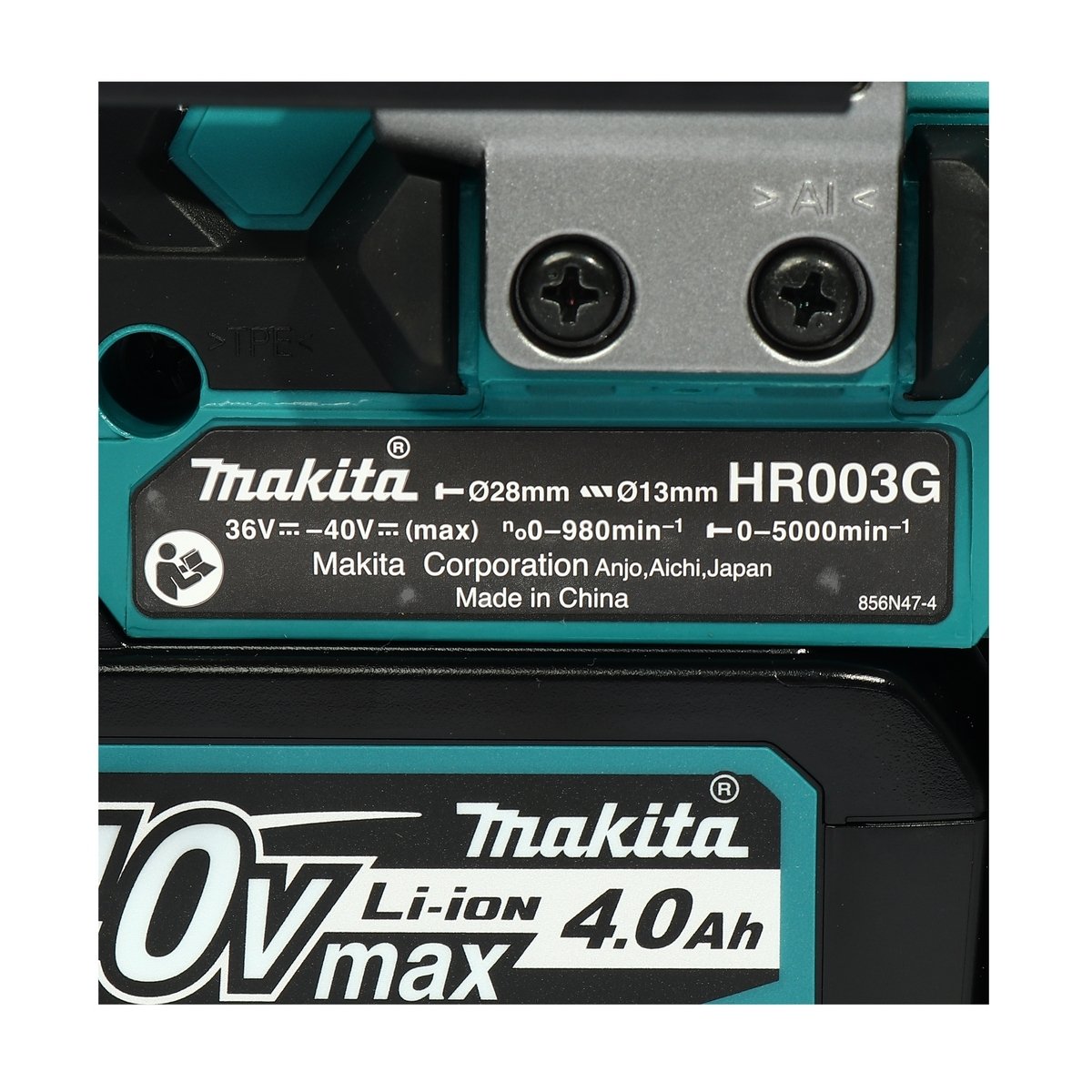MAKITA รุ่น HR003GM201 ชุดเซ็ท สว่านโรตารี่ไร้สาย 40Vmax 28 mm. 40V 4Ah x2, DC40RA, Makpac (Type 4)