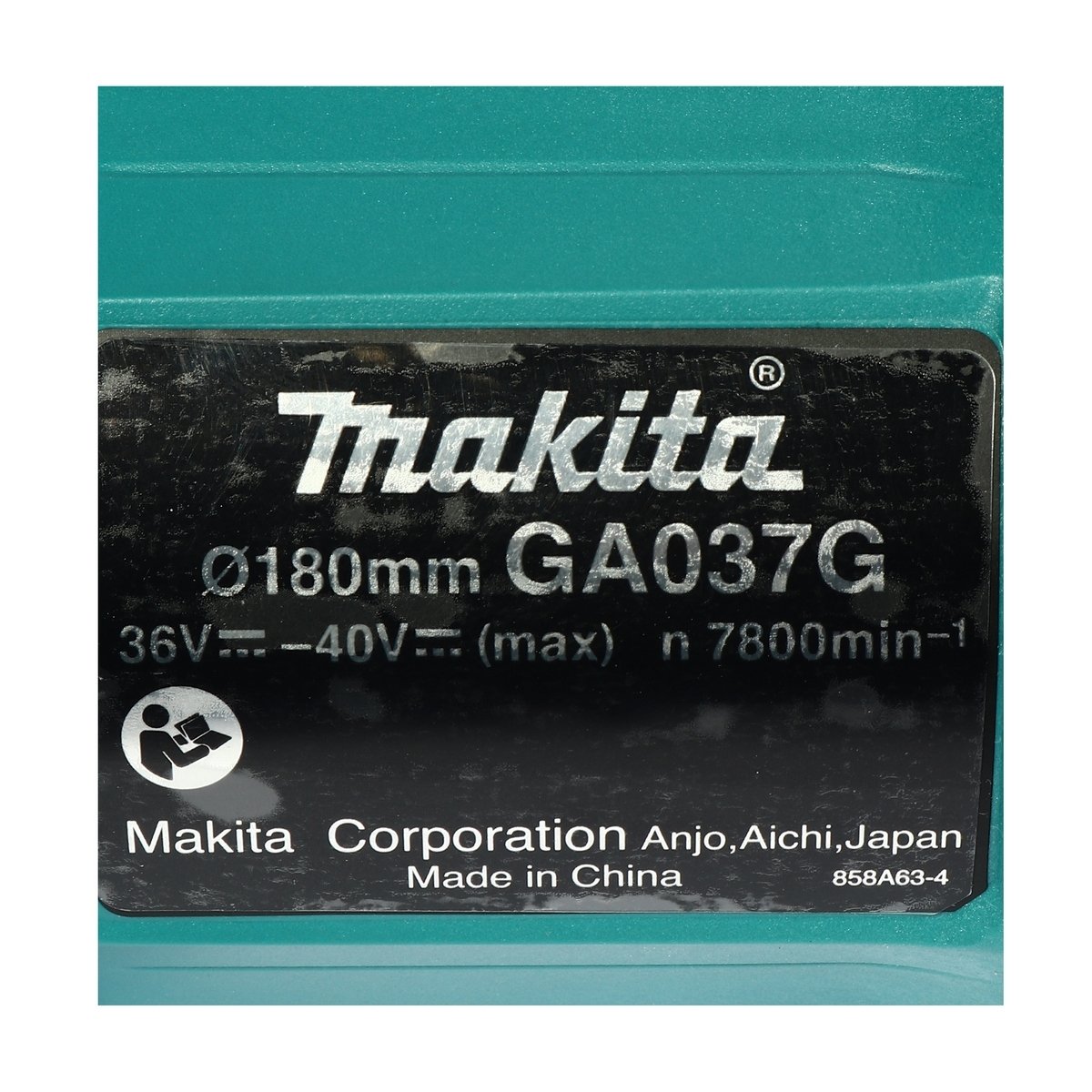 MAKITA รุ่น GA037GZ เครื่องเจียไร้สาย 40 Vmax ขนาด 7 นิ้ว ความเร็วรอบตัวเปล่า 7,800 รอบ/นาที (เครื่องเปล่า)