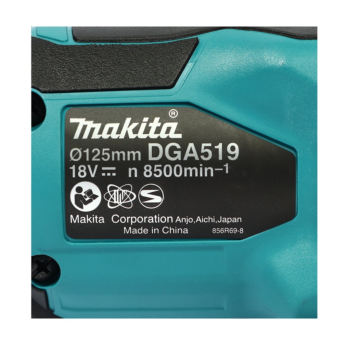 MAKITA รุ่น DGA519Z เครื่องเจียไร้สาย 18V ขนาด 5 นิ้ว ความเร็วรอบตัวเปล่า 3,000-8,500 รอบ/นาที X-Lock สวิตซ์บีบ (เครื่องเปล่า)