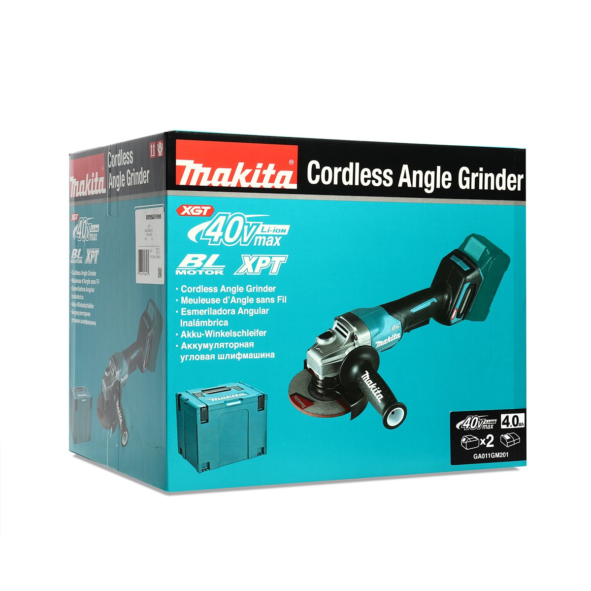 MAKITA รุ่น GA011GM201 ชุดเซ็ทเครื่องเจียไร้สาย 40 Vmax ขนาด 4 นิ้ว ความเร็วรอบตัวเปล่า 8,500 รอบ/นาที สวิตซ์บีบ 40V 4Ah x2, DC40RA, Makpac (Type 4)