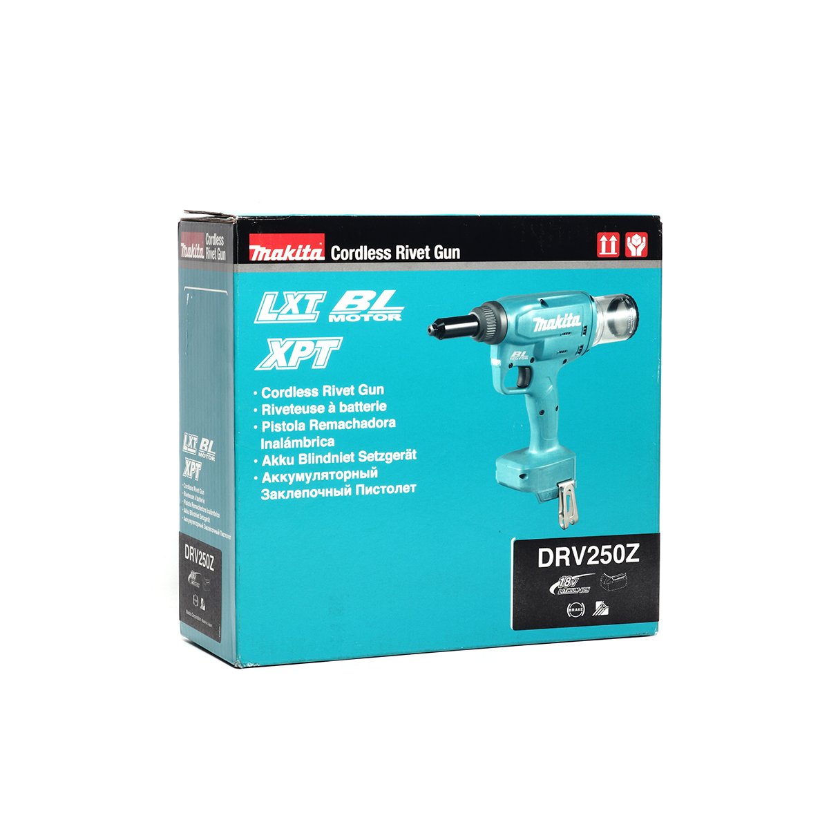 MAKITA รุ่น DRV250Z เครื่องยิงรีเวทไร้สาย 18 V แรงดึง 20 kN ระยะดึง 30 มม. เส้นผ่าศูนย์กลางรีเวท 2.4 - 6.4 มม. (เครื่องเปล่า)