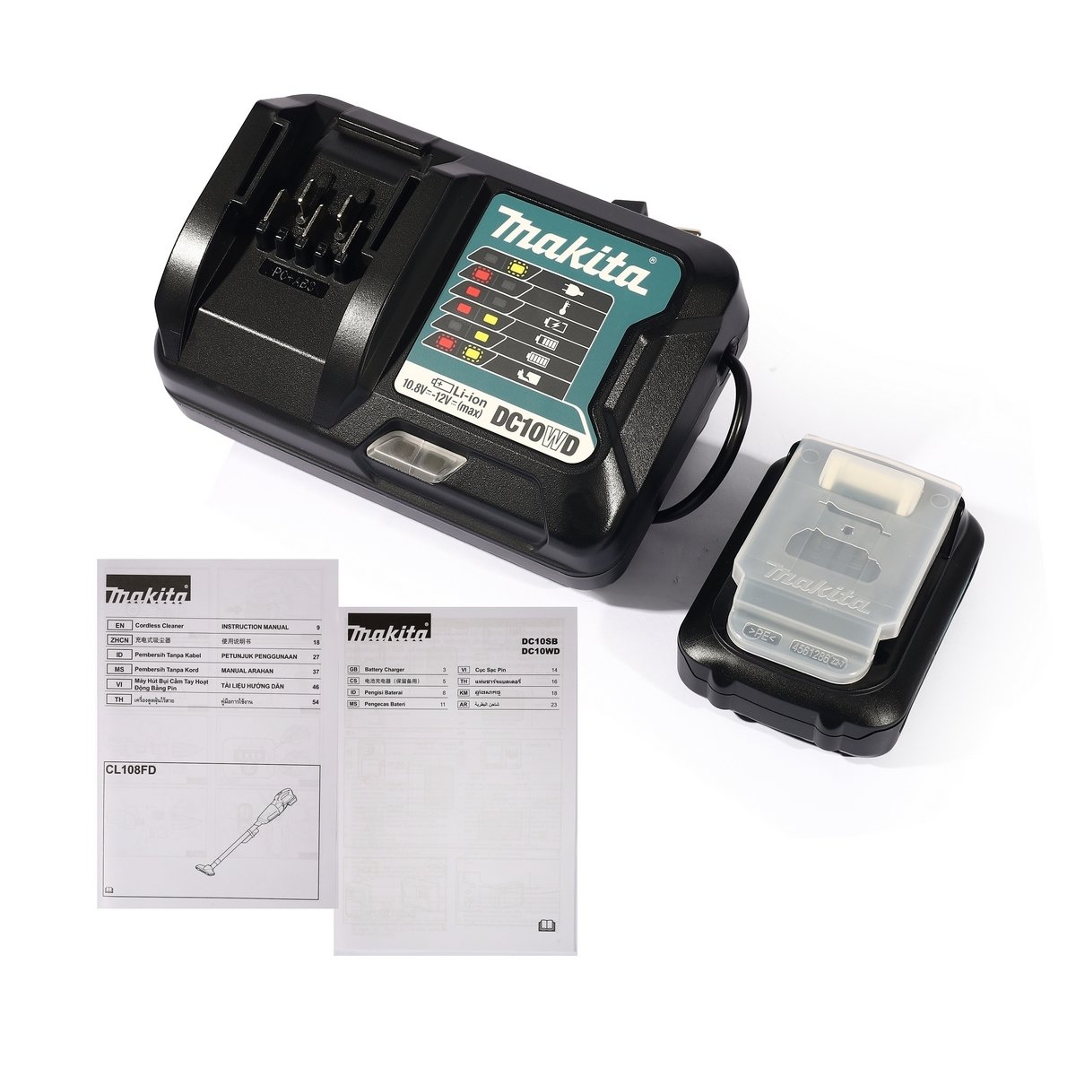 MAKITA รุ่น CL108FDWYW เครื่องดูดฝุ่นไร้สาย 12 Vmax แรงดันลมสูงสุด 4.4 KPA 12V 1.5Ah, DC10WD