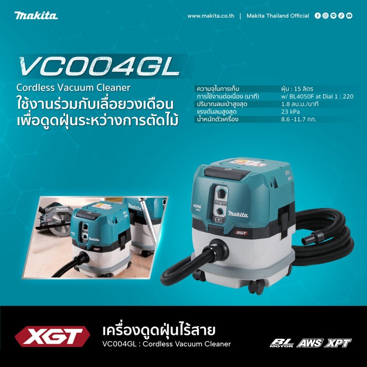 MAKITA รุ่น VC004GLZ01 เครื่องดูดฝุ่นไร้สาย 40 Vmax แรงดันลมสูงสุด 23 KPA BL motor (เครื่องเปล่า)