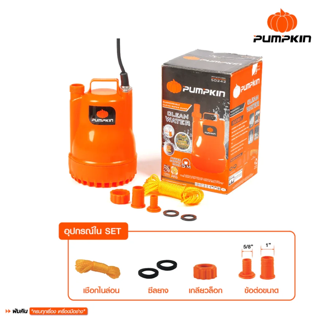 PUMPKIN รุ่น PTT-WTP100CA ปั๊มแช่ดูดน้ำดี 100W (50242)