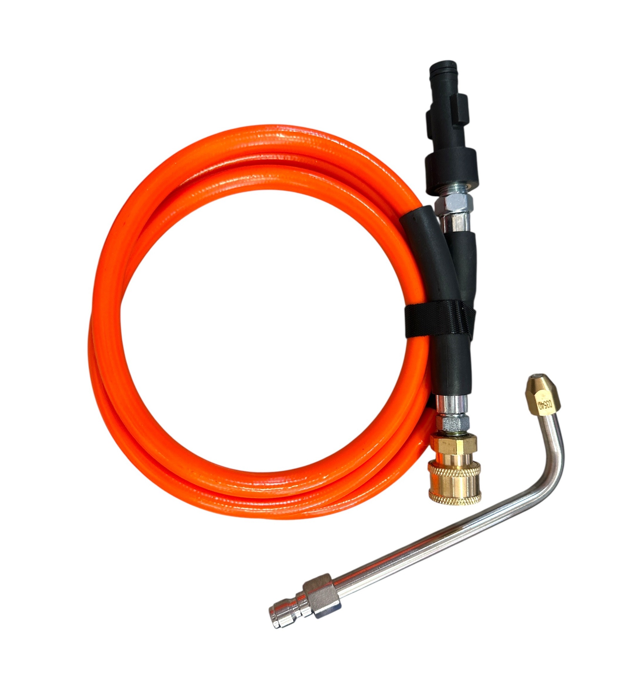 - สายฉีดน้ำแรงดันสูง : สายสีส้มสดใส ม้วนเป็นวง มาพร้อมข้อต่อแบบสวมเร็ว