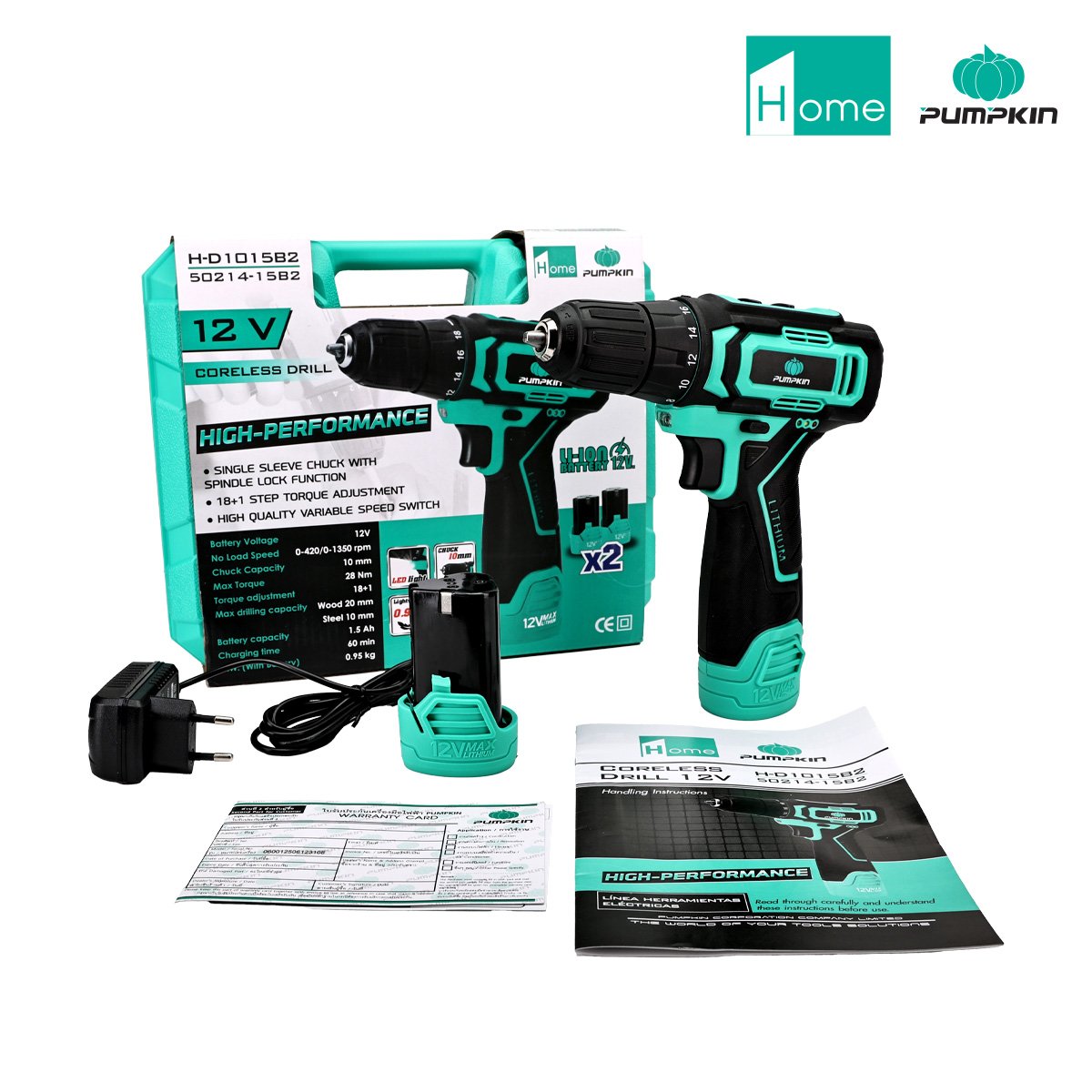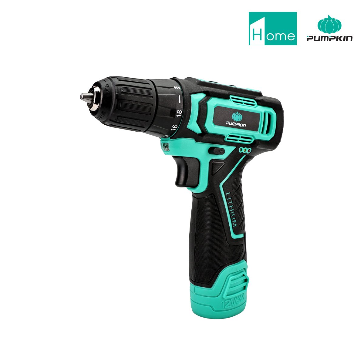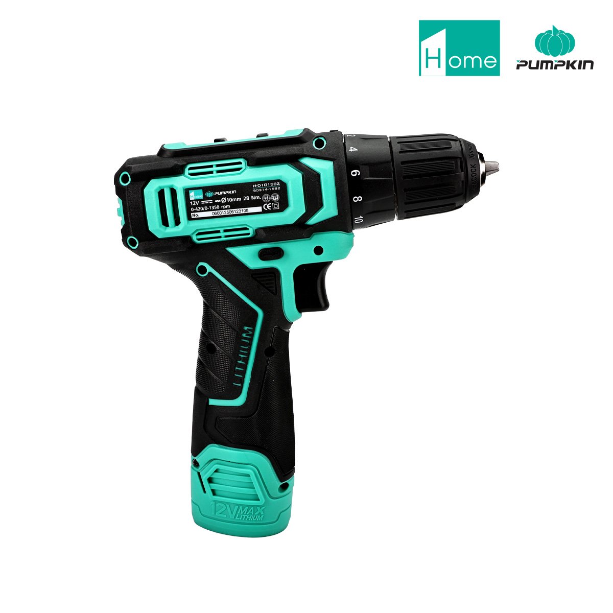 PUMPKIN รุ่น H-D1015B2 สว่านไร้สาย 12V พร้อมแบตเตอรี่ 1.5ah x 2 ก้อน และแท่นชาร์จ (J-Series) 50214-15B2