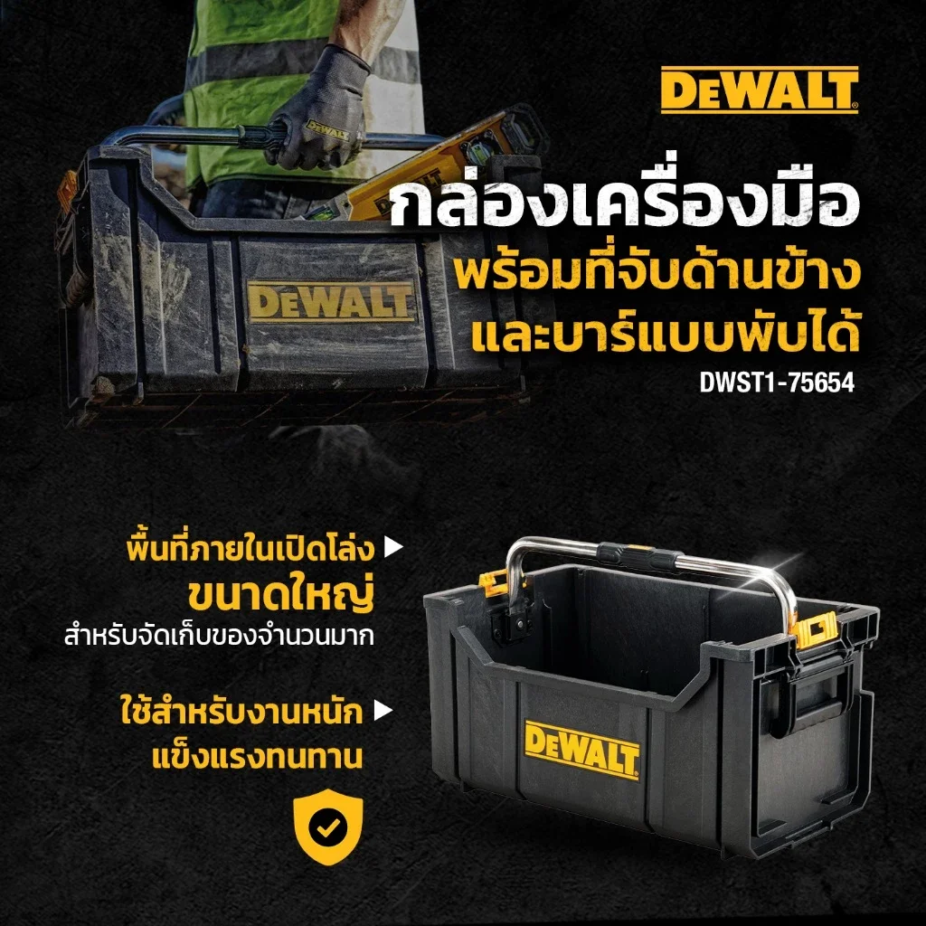 • DEWALT รุ่น DWST1-75654 กล่องเครื่องมือพร้อมที่จับด้านข้างและบาร์แบบพับได้
