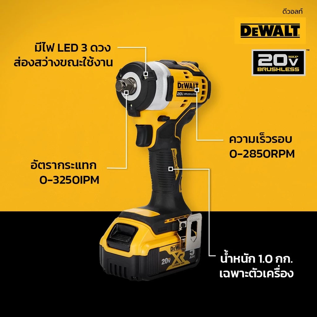 - DEWALT รุ่น DCF911N-B1 บล็อคไร้สาย 1/2" 20V