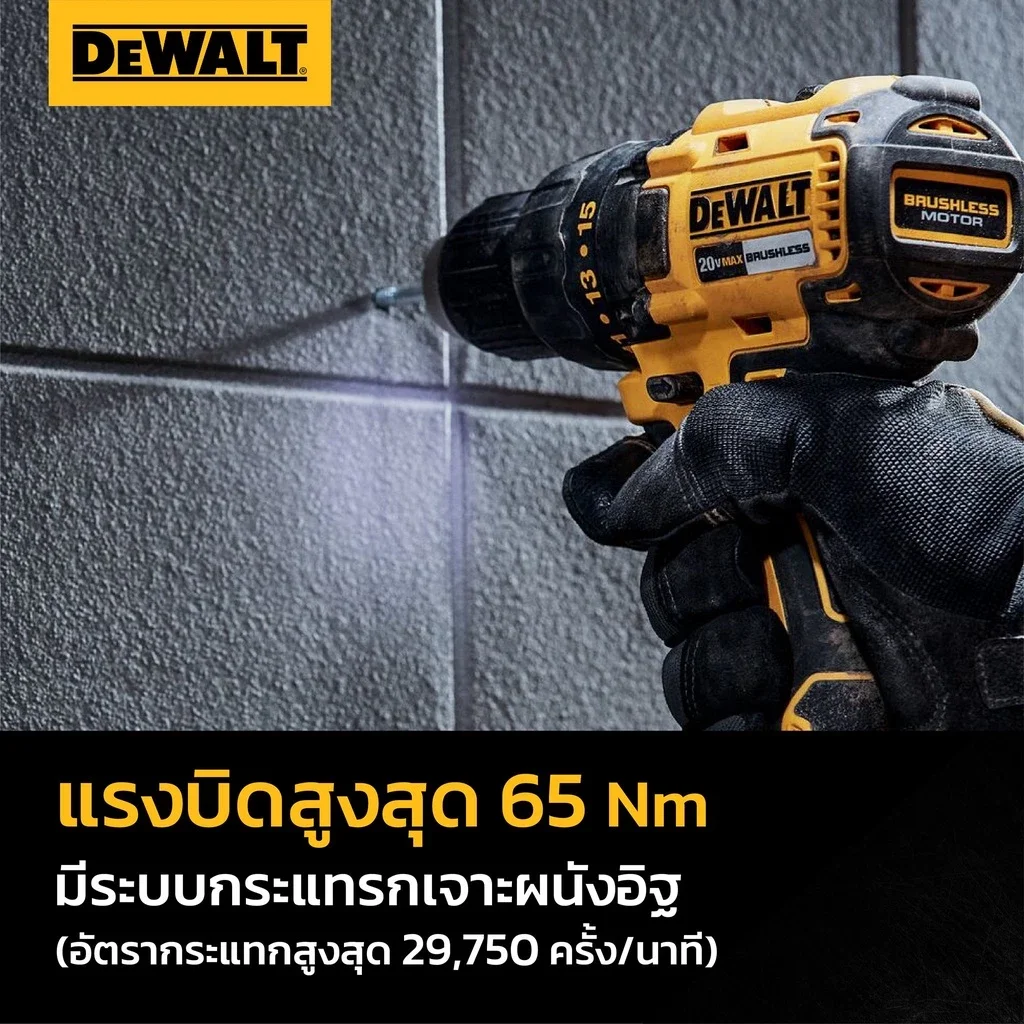 DEWALT รุ่น DCD7781D2A-B1 สว่านกระแทกไร้สาย 13mm 18V แบต 2.0Ahx2 และแท่นชาร์จ พร้อมอุปกรณ์ DCD7781D2A-B1