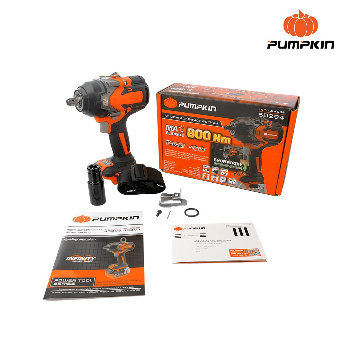 PUMPKIN INFINITY POWER 20V บล็อกกระแทกไร้สาย 1/2นิ้ว Compact 8N ไร้แปรงถ่าน 20V Li-ion INF-12IWCB8-501K (50294)